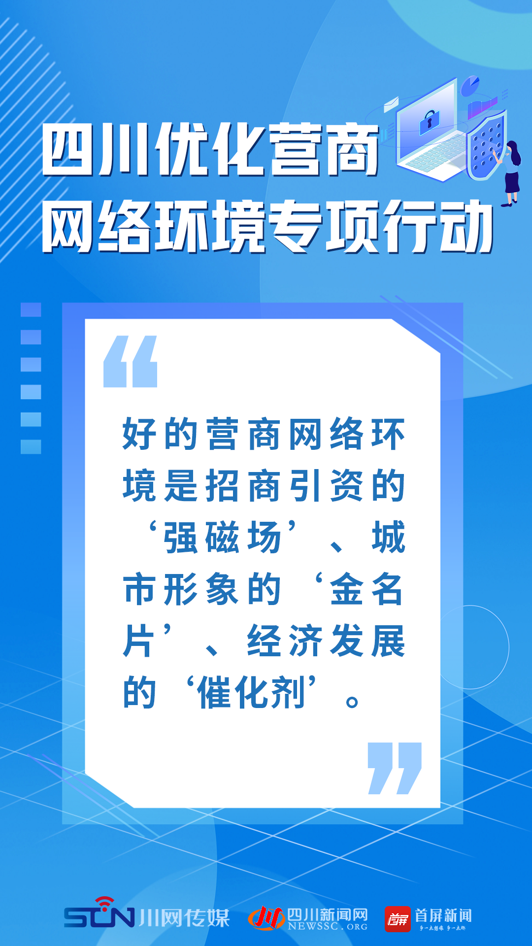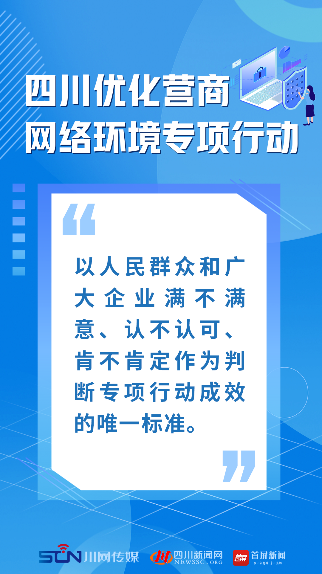 今年3月,四川启动为期6个月的“净生态·促发展”优化营商网络环境专项行动。5月7日,省委网信办组织召开全省优化网络营商环境专项行动工作推进会,对专项行动进行再动员再部署,进一步细化措施,务求取得实效。四川深入推进优化营商网络环境专项工作怎么干?一组海报带你看懂!