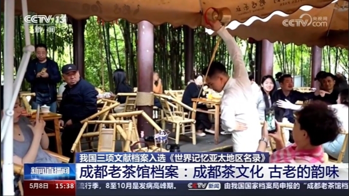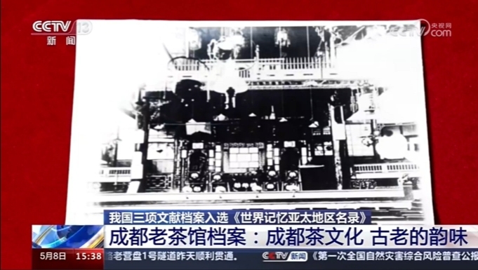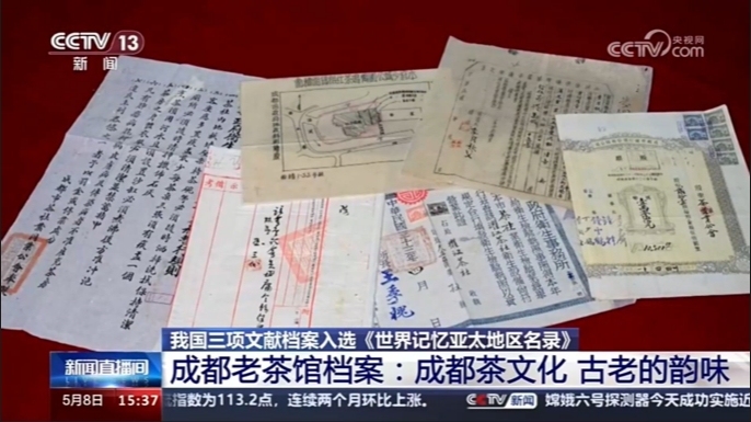 5月8日,中央广播电视总台新闻频道《新闻直播间》栏目以“成都老茶馆档案:成都茶文化 古老的韵味”为题,关注了“成都老茶馆档案”等三项档案文献,成功入选《世界记忆亚太地区名录》。