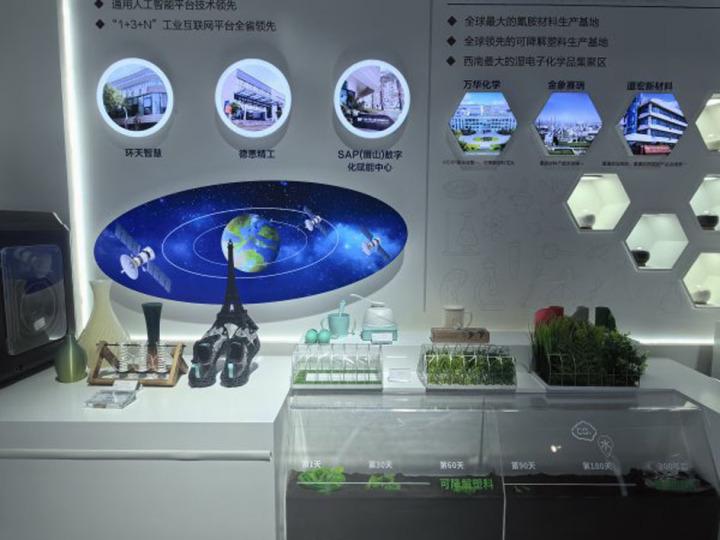 “东坡制造”展区展示的化工新材料产品。
