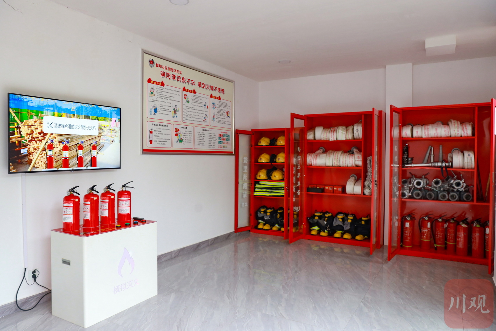 社区微型消防站内有给小朋友科普消防知识的互动设备。黄刚 摄