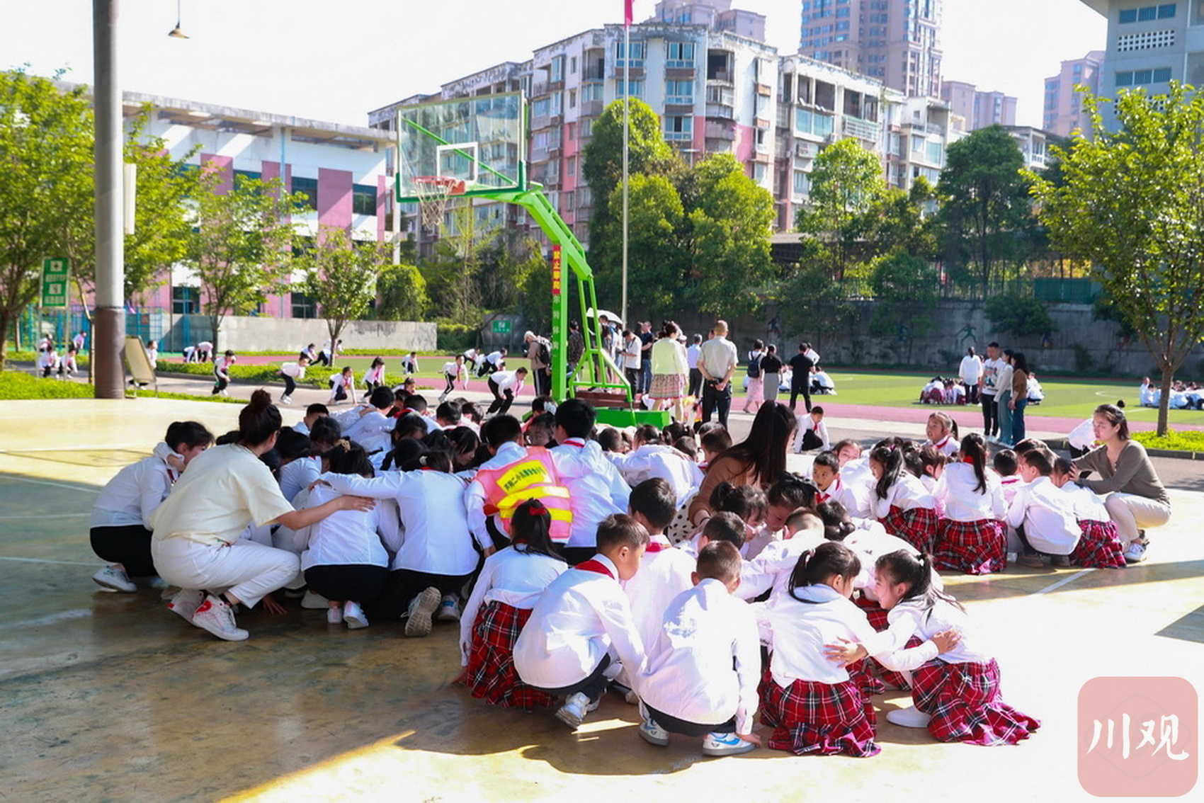 芦山县的同学们在进行防灾减灾演练。黄刚 摄