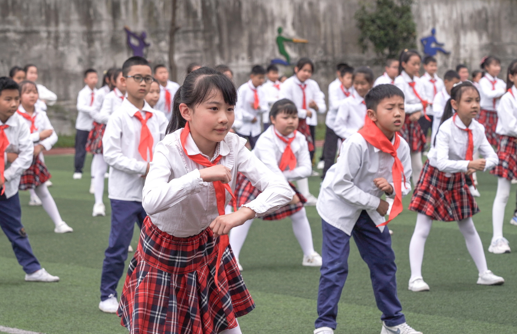 同学们在大课间做手势操。芦山县融媒体中心供图