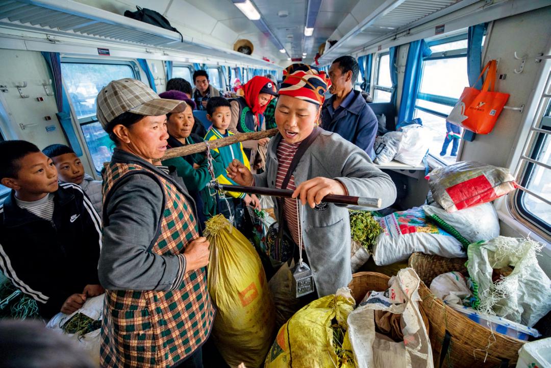 ▲乡亲们在“慢火车”上欢声交谈。图据中国铁路
