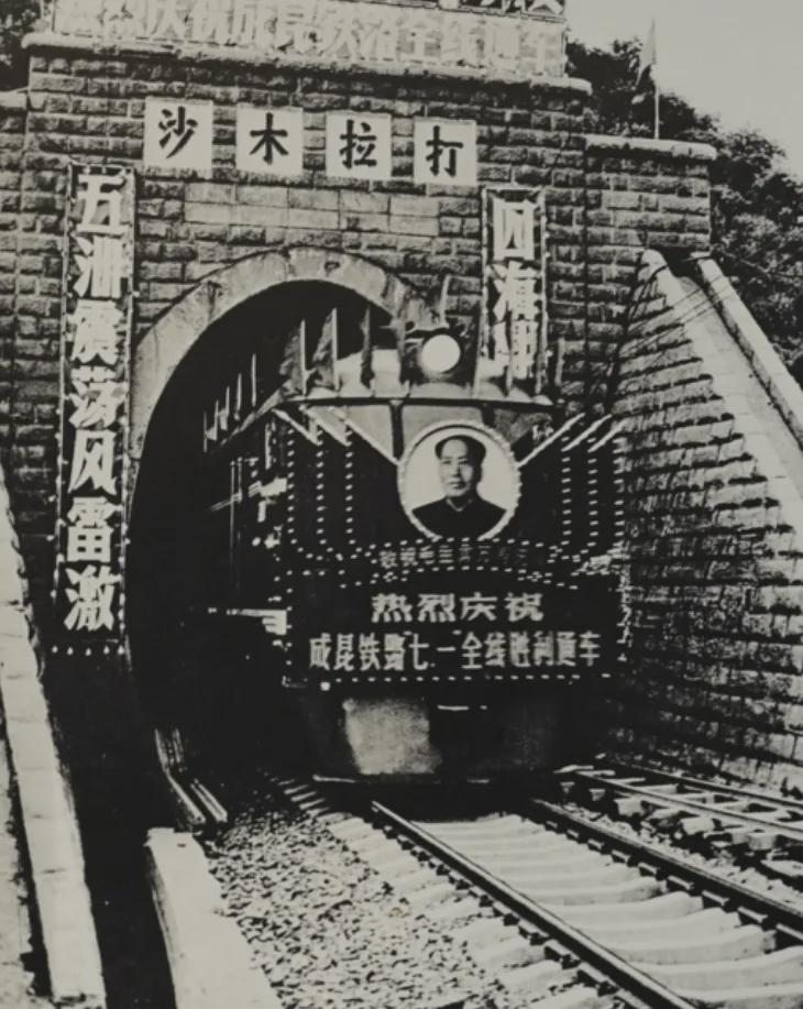 ▲成昆铁路全线通车后,列车首次通过沙木拉打隧道