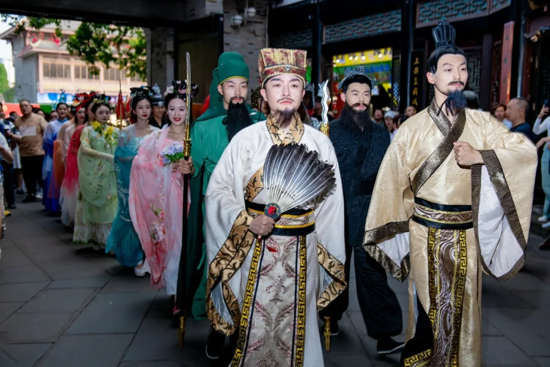 武侯祠景区,演员身着古装巡游,带领游客沉浸式体验别样“三国”文化。图据成都武侯祠博物馆