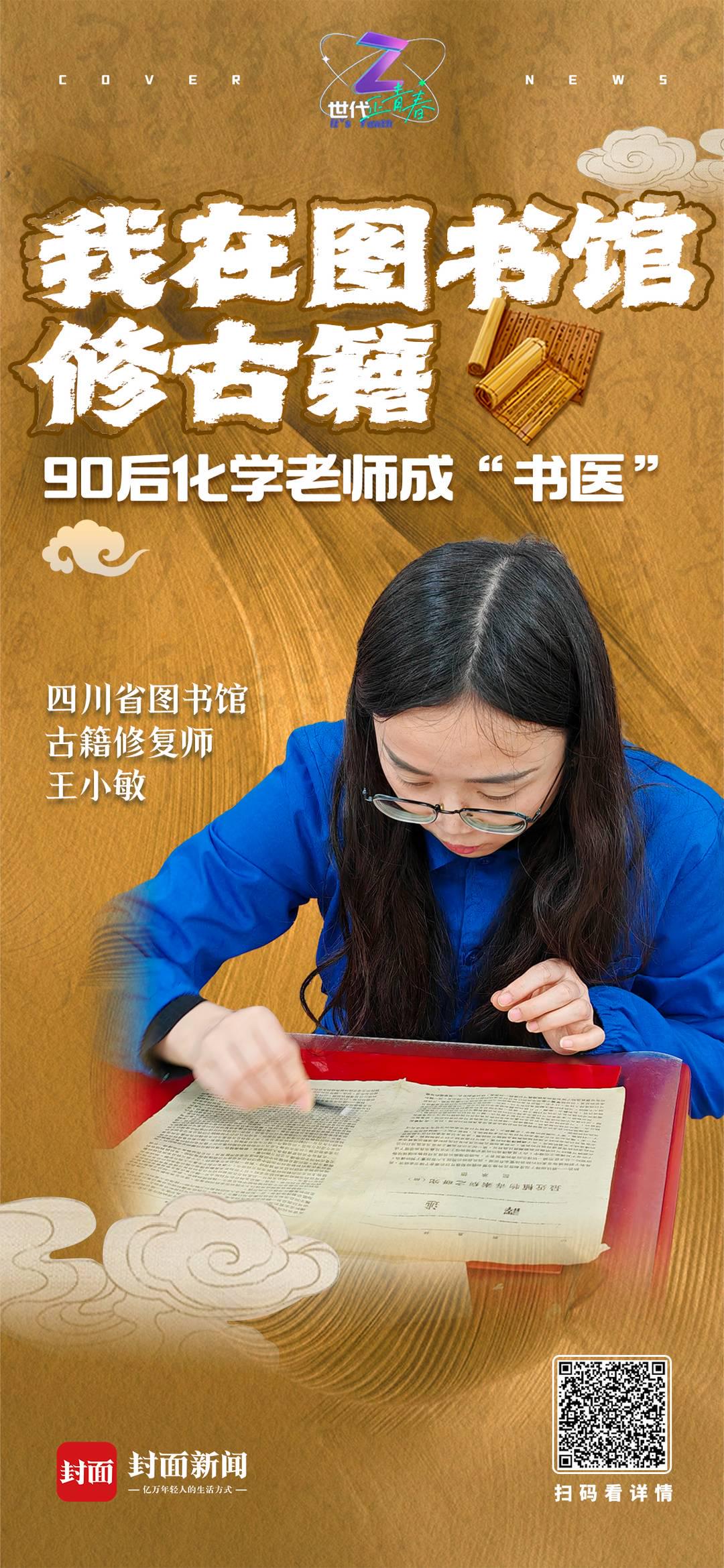 王小敏曾经是一名初中化学老师,三尺讲台与学生就是她工作的一切,在她看来,教书育人和古籍修复有相同的意义:“教育是培养下一代、照亮我们未来的路,而古籍修复是让我们重见历史、看清来时的路,他们具有同样的重要性。”曾经,王小敏通过纪录片《我在故宫修文物》产生了对文物修复的崇拜之情,而两年前的一天,她在四川省图书馆的招聘公告里看到了“化学”专业的岗位招聘,“我不知道化学和古籍修复有什么关系,但知道自己实现理想的机会来了,我会抓住它。”