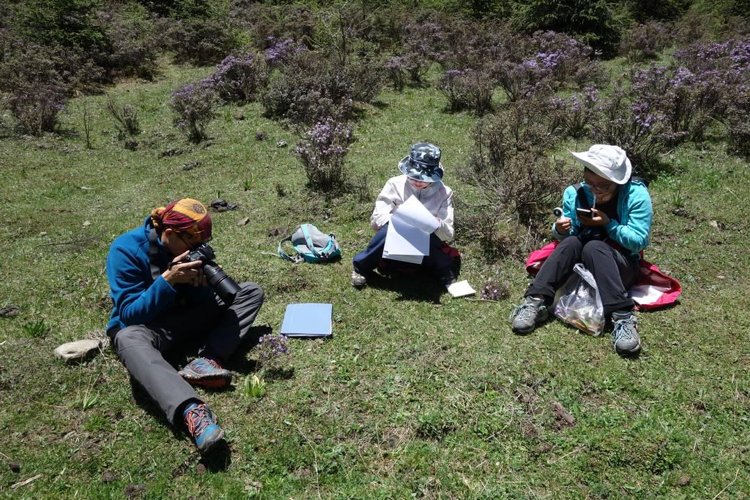 “花花草草小队”成员在四姑娘山调查杜鹃花