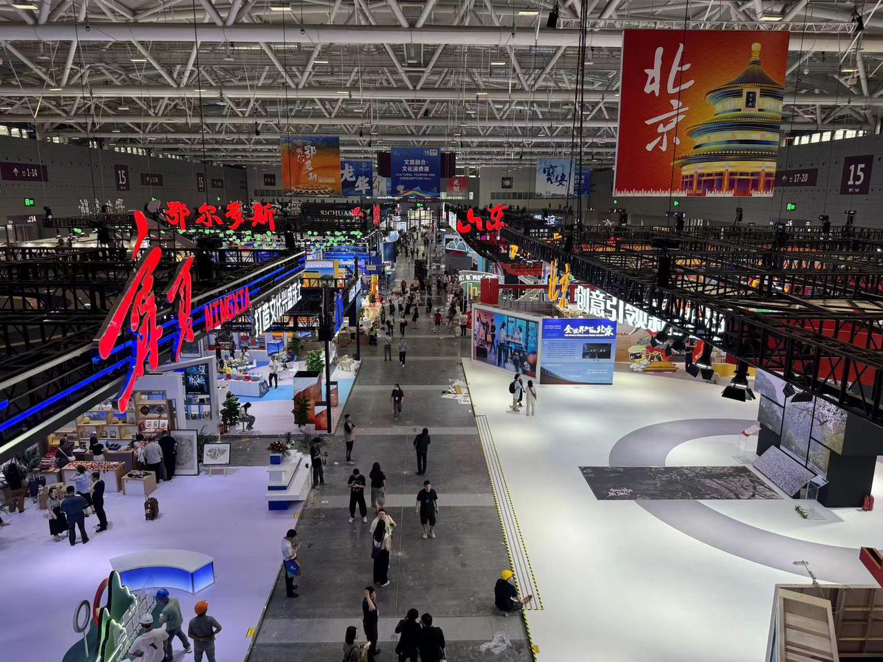 5月22日下午17时,距离本届文博会开幕不到24小时,记者看到大部分展馆已经搭建完毕,正在进行最后的调试布馆。据悉,今年文博会主会场共设8个展馆,包括3个综合展和5个专业展,各展馆展览面积均为2万平方米,总面积为16万平方米,较上届扩大4万平方米。本届深圳文博会将展出文化产品超过12万件,4000多个文化产业投融资项目在现场进行展示与交易,展览规模创历年之最。