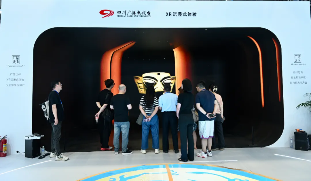 在四川馆正门的“四川造”XR超高清显示屏中,播放着超高清的三星堆遗址视频,神秘古蜀文明细微之处的美丽面容,得以近距离展现。