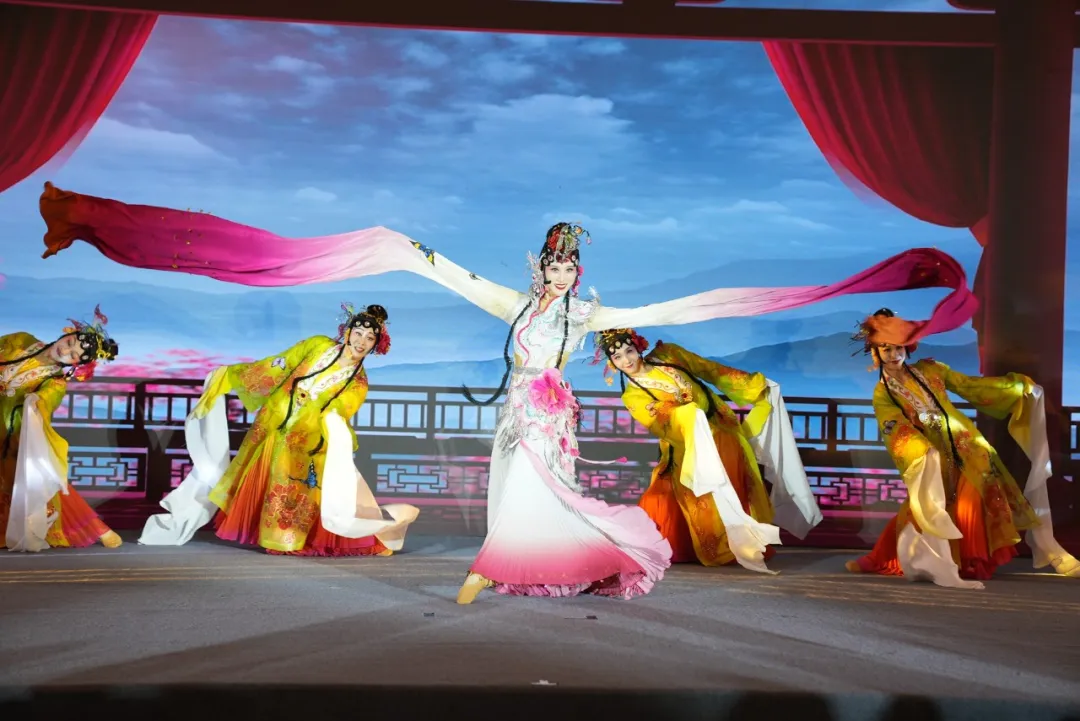 23日晚,深圳,金熊猫之夜,川剧水袖表演上演,来自四川的演员们摇、抛、甩、收、翻,将手上的水袖耍成一幅《百花争妍》图。围观者掌声热烈,欢愉的气氛洋溢会场内外。
