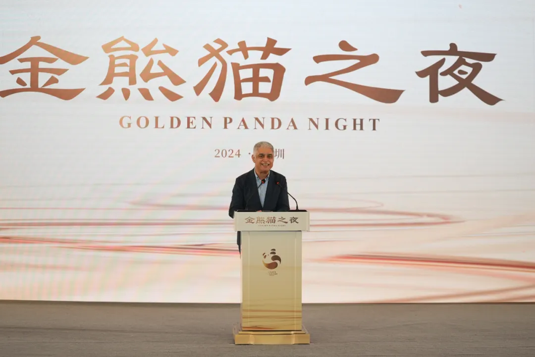 当晚的金熊猫之夜上,首届金熊猫奖评委代表、导演毛卫宁,首届金熊猫奖获奖作品代表、华纳兄弟探索集团亚太区副总裁魏克然·钱纳等亮相。看着眼前憨萌可爱的金熊猫logo,周边流光溢彩的光影,魏克然·钱纳将记忆拉回到2023年首届金熊猫奖。彼时,金熊猫国际文化论坛、金熊猫盛典、金熊猫之夜,主体活动庄重磅礴、熠熠生辉,八方友人载兴而归。大家一起看电影、我与熊猫面对面、熊猫带你看世界,形式多样、精彩纷呈的配套活动,让创作者在轻松愉悦之间,碰撞出思维的火花。