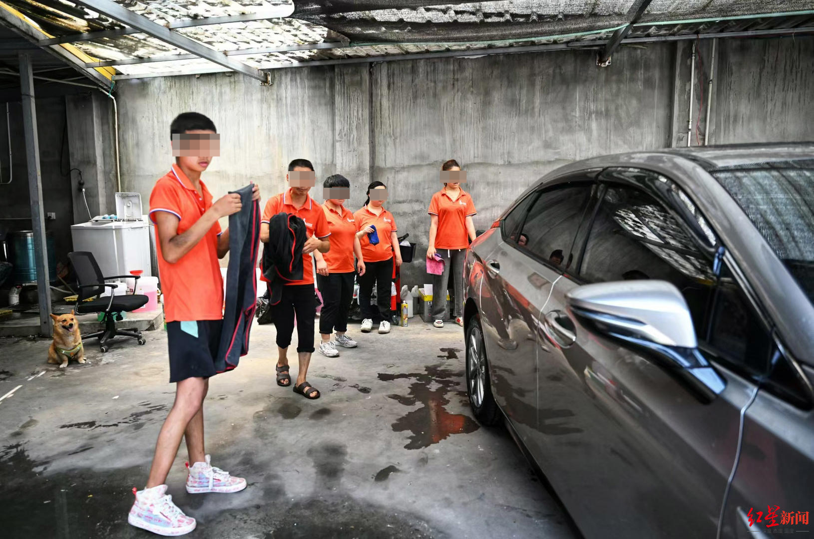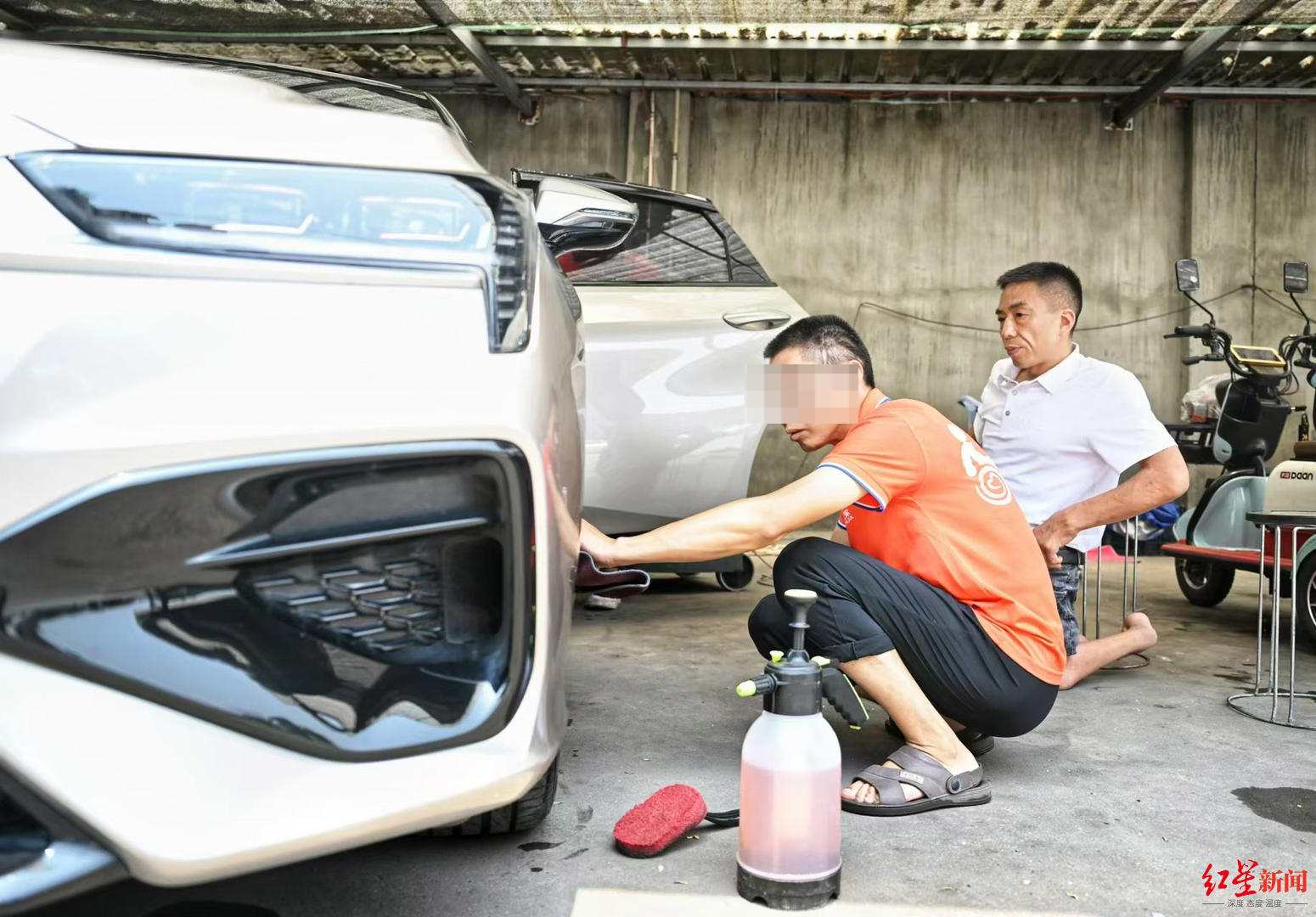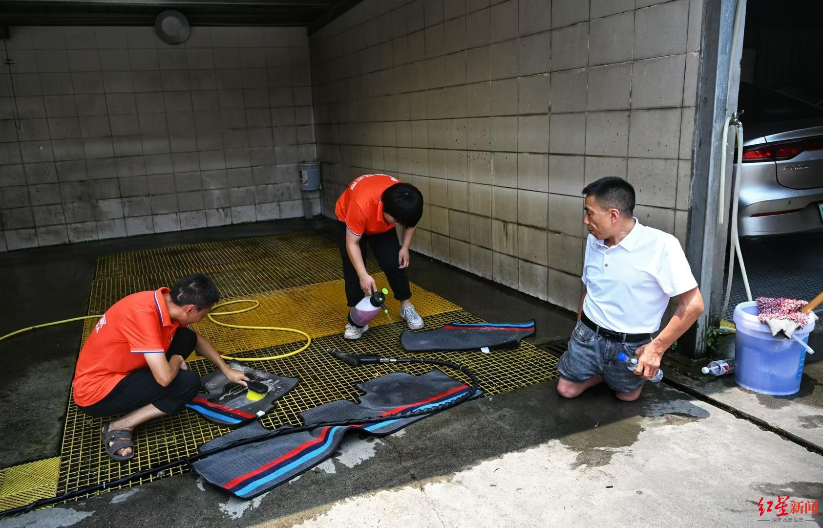 25日,就在记者探访时,洗完车的何先生从车上拿了五六瓶矿泉水递给员工们。他说,自己就住在附近,通过网上视频了解到这家店,特意来洗车的。