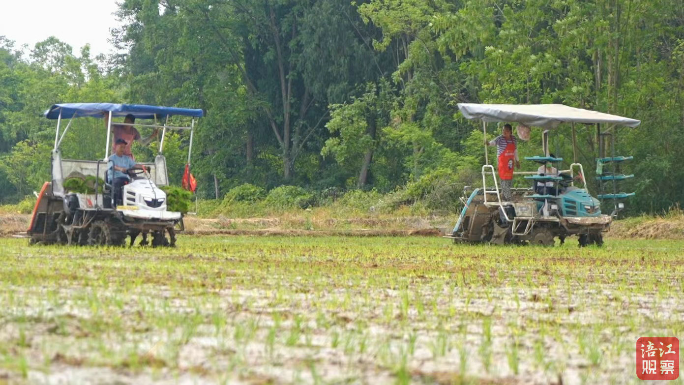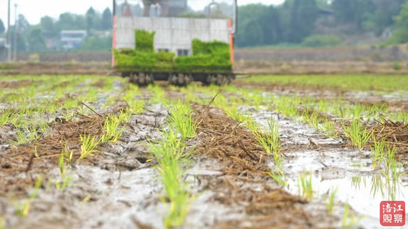 小满前后雨水充足,气温上升,正是插秧的好时节。近日,记者走进绵阳市涪城区新皂镇梅家沟村的千亩优质粮油种植基地看到,农机手们正娴熟地操作着插秧机,来回穿梭在稻田间,机械化插秧有序推进。
