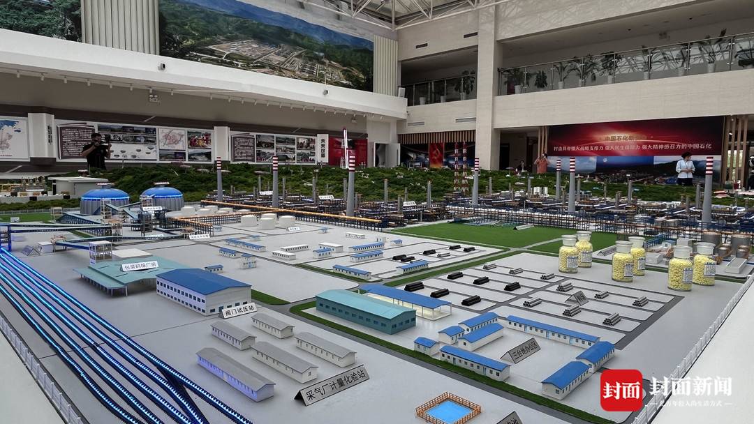 净化厂究竟是怎样的面貌?在国内首个以高含硫气田为主题的科技展览馆内,大家对于净化厂的想象被巧妙地缩小并还原,通过三维模拟沙盘的形式具象地展现出来。