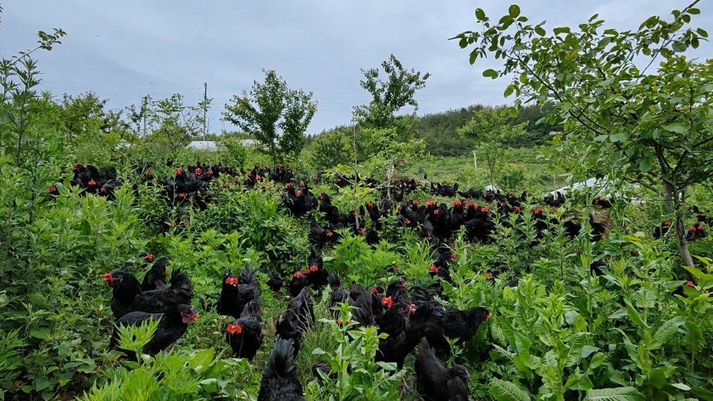 在石塘镇贺家湾村与旧院镇高峰冠村之间,矗立着一道被当地人称为“百里坡”的狭长山体。2007年,刘晓岗在这片山坡上开启了他的黑鸡养殖事业。时至今日,“百里坡”生态放养的旧院黑鸡养殖基地已扩展至1.2万亩,年出栏量超10万只。