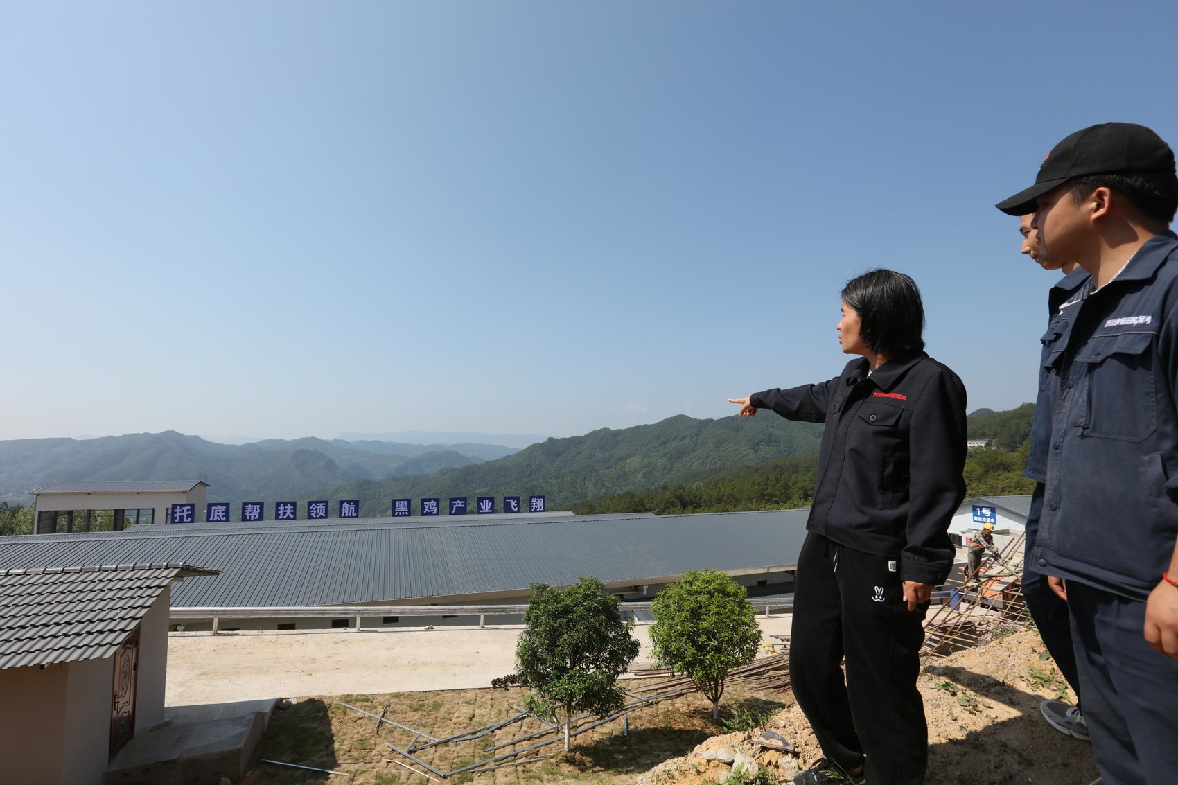 在位于石塘镇杉林湾村、双合村的育种场建设现场,从高处俯瞰,“托底帮扶引领,黑鸡产业飞翔”醒目标语下,育雏鸡舍、育成鸡舍、种蛋鸡舍、有机肥加工厂等一栋栋设施建设已进入尾声,自动化生产线正抓紧安装调试,园区道路硬化工作正紧锣密鼓进行。