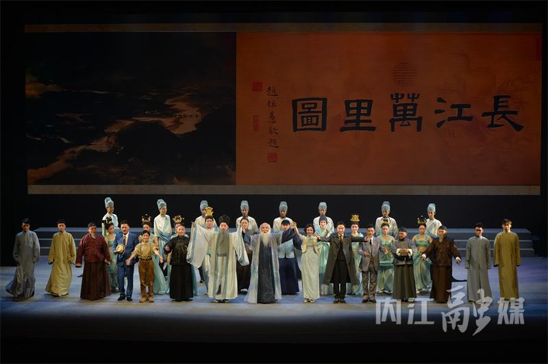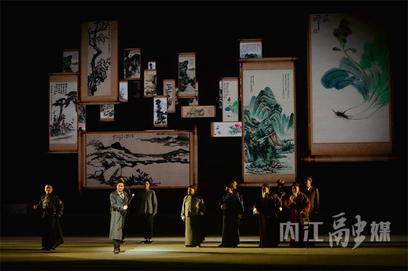 川剧《大千世界》以张大千创作的《长江万里图》为主线剧情,分为“上海奇遇”“敦煌遐思”“赤壁对话”“望月思乡”四个篇章,展现了年轻张大千的才情禀赋、哲思追求和老年张大千的艺术魂、家国情、游子意,是内江继《糖坊风云》《凤鸣山传奇》等原创川剧剧目后,推出的又一部打响“大千艺术品牌”的精品力作。