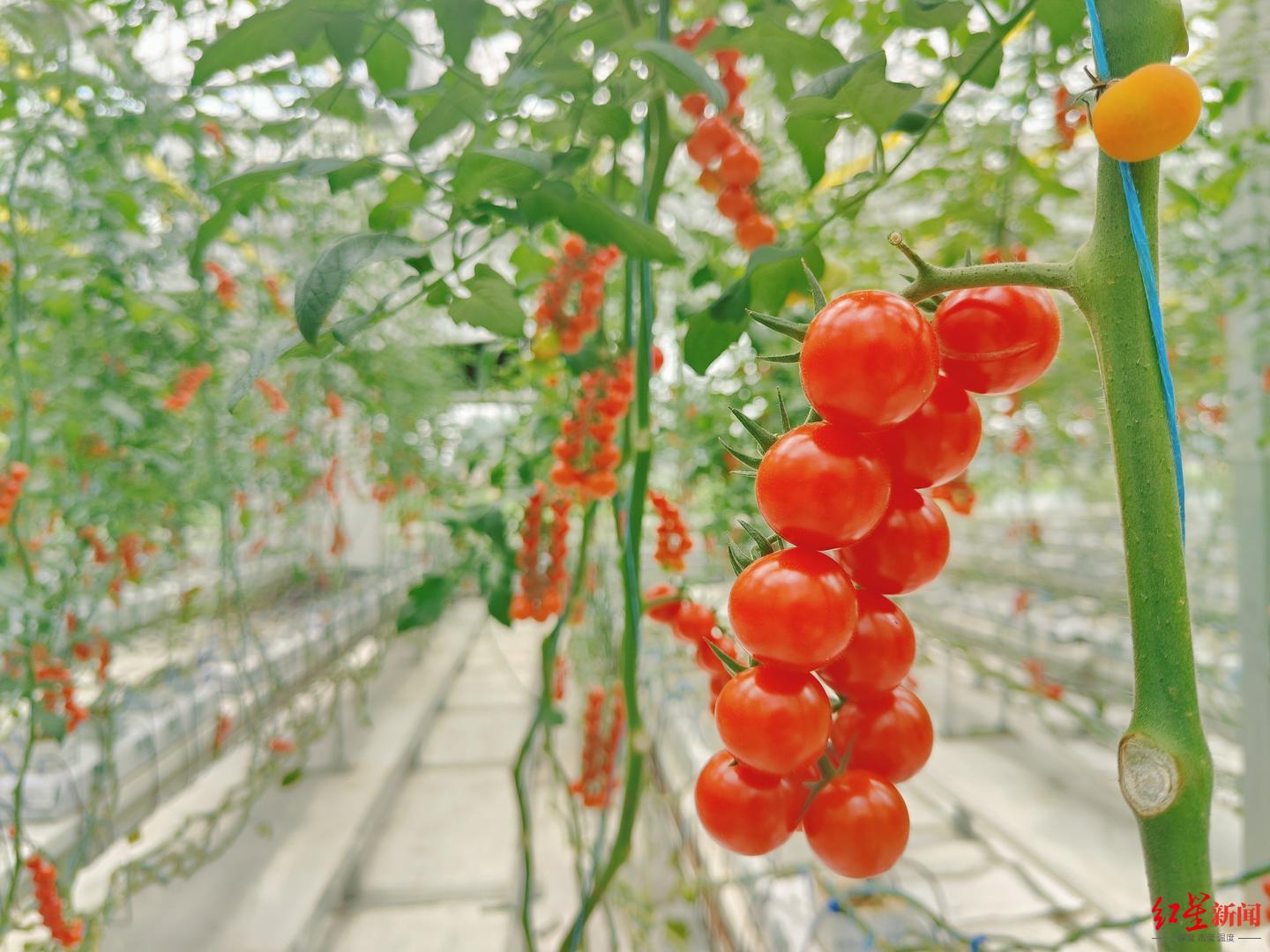 记者看到,这些由AI种出来的小番茄个头饱满、颜色鲜红、大小均匀,成串地挂在藤蔓上,甚至每一串的颗数都被精准地控制在了10颗左右。“如今已经到了采摘末期,我们的采摘时间是从每年的一月份一直到六月份。”赵辉说。