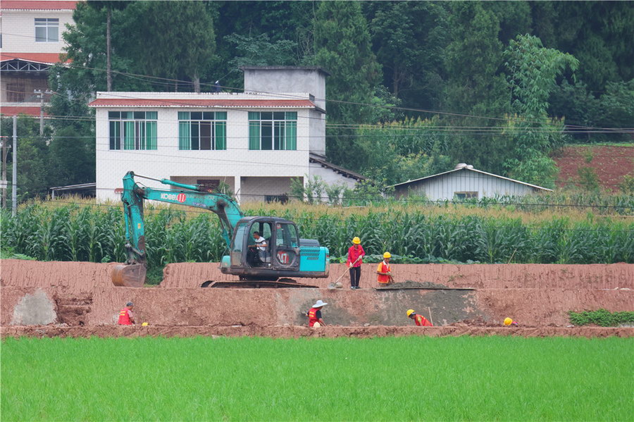 “项目于今年3月31日开建。为了不误农时,我们采取边建边种模式。5月中旬在已建好的400亩高标准农田里栽种秧苗,现在正处于施肥、杀虫阶段。”桅杆坝村党总支书记、村委会主任刘建华告诉记者,项目已完成总工程量的50%。