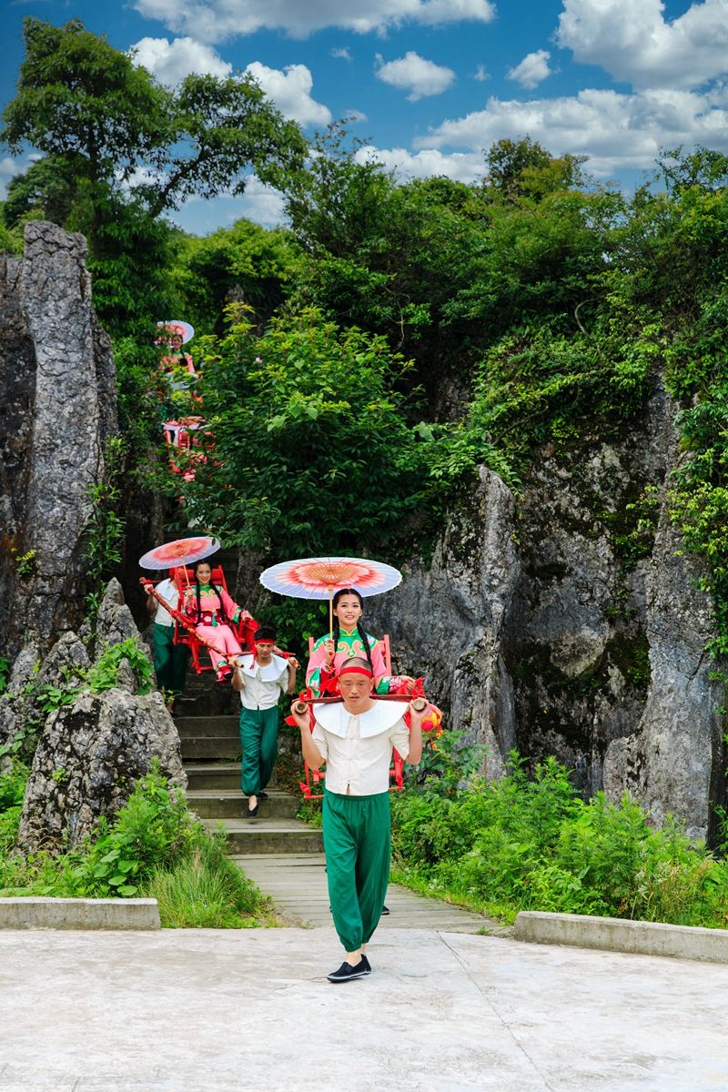 华蓥山“滑竿抬幺妹”展演。(广安市文化广播电视和旅游局供图)