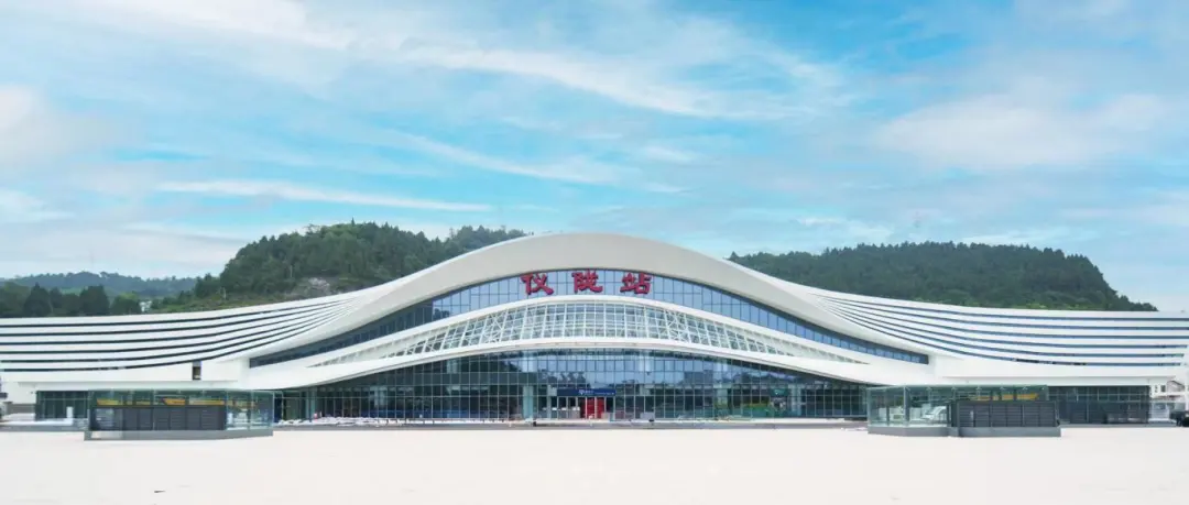 仪陇站站房总建筑面积1万平方米,拥有2个站台4条线路,计划年旅客发送量近期220万人,远期360万人。站房以“上善若水,生态新城”为设计理念,将仪陇县“三面环山、碧水穿城”的优美山水形象融入站房造型中,呼应仪陇“打造嘉陵江畔现代山水园林城市”的发展理念,将仪陇站的“红色文化”和“绿色发展”有机融合,是“巴中人文精神”和“川陕红色文化”的一次美妙契合。