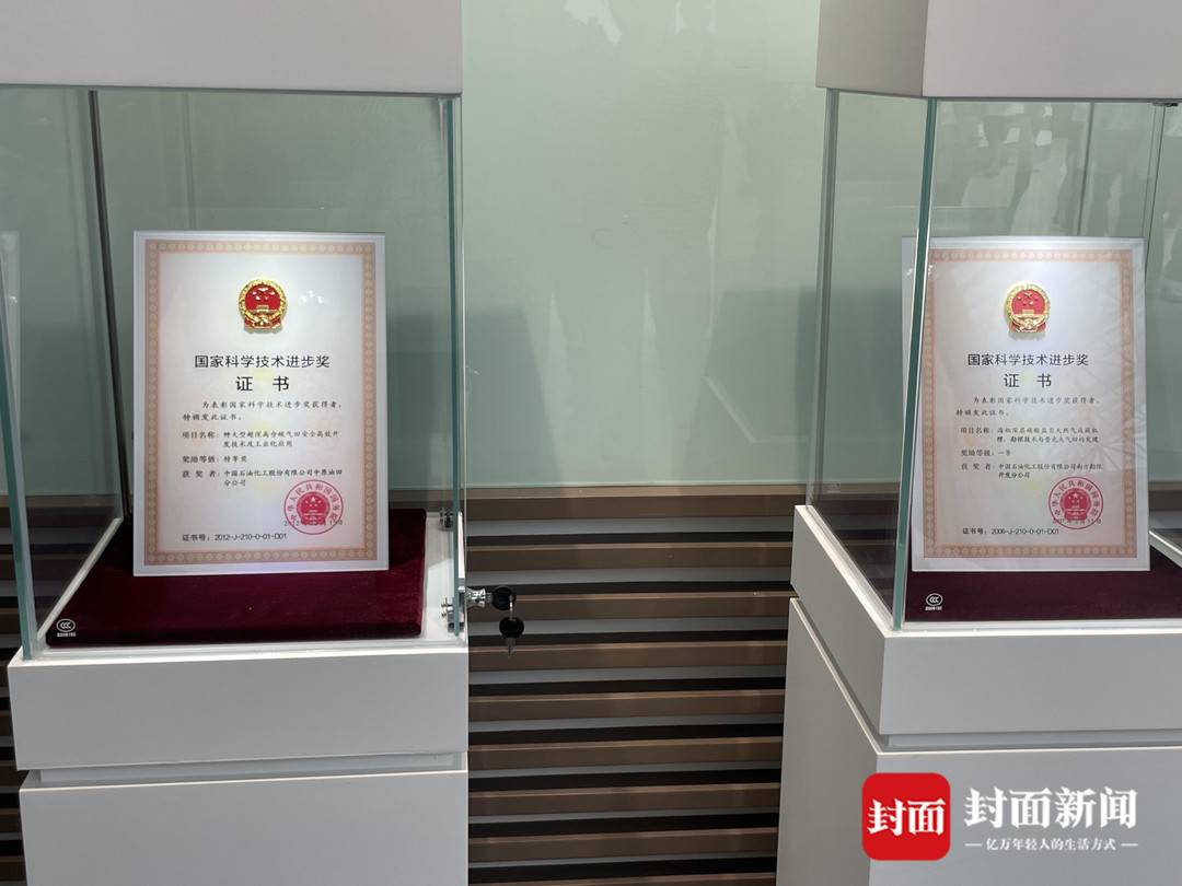 紧邻气田的普光气田科技展览馆内,两张被精心放置在玻璃罩中的奖状,引起众人注意。