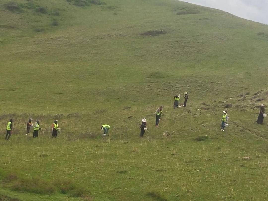 红原县在草场上人工撒种。受访者供图