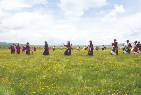 麦洼锅庄,又称为“麦卓”,其来源于甘孜州雅砻江流域的新龙锅庄,历史悠久。锅庄随着游牧部落迁徙,在充分融合嘎曲河流域游牧文化元素的基础上,经过不断发展和演变,形成了现在人们所见独具特色的麦洼锅庄。