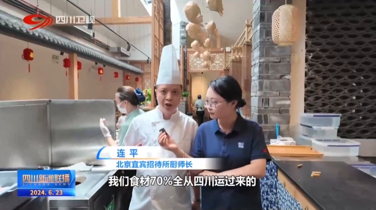 北京宜宾招待所厨师长 连平: 我们食材70%全从四川运过来的,然后像猪肉、鸡肉,然后鸭子,然后这些家禽,基本上都是从四川空运过来的。我们做的就是传统川菜,原汁原味,把川菜呈现给北京(食客)。