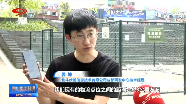 北斗伏羲信息技术有限公司成都研发中心技术经理 晏坤:我们现有的物流点位之间的距离是6.3公里左右,在手机上显示开车时间大约是15分钟,而我们的直线距离是1.6公里,空中飞行时间只需要3分钟,这极大地提升了一个运输效率。