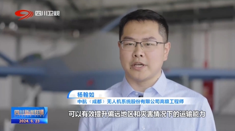 中航(成都)无人机系统股份有限公司高级工程师 杨翰如:执飞支线物流运输任务的这架翼龙-2无人机,可以有效地提升偏远地区和灾害情况下的运输能力,这也是大型无人机未来发展的一个重要趋势。