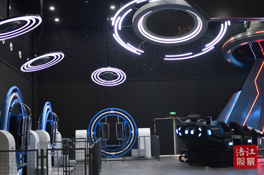 当天对外开放的航天科技馆,位于四川两弹城博物馆对面,包含舰桥街区、紧急传送、月球基地、飞向火星、火星往事、grox资料室、火星救援、无尽宇宙、最后的冒险等九个展区,是利用声光电、轨道车、密室逃脱、穹幕影院等多种先进的多媒体技术,打造的全国首个基于未来的沉浸式航天文旅探索体验项目。