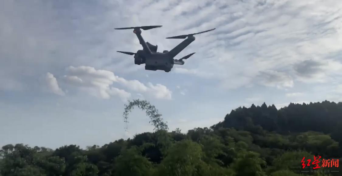 伴随一阵嗡鸣声,一架无人机从绿树掩映间的民房屋顶腾空而起,迅速攀升至百米高空,按照设定的路线,向着广袤的森林飞去。