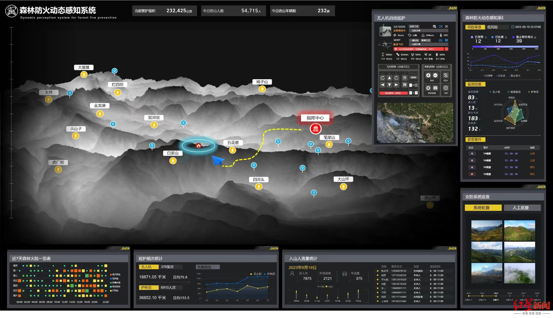 这群年轻人正在进行一次关于无人机山林守护监测系统的测试。陈尧介绍,这套专门为森林防火构建的“森林卫士——无人机山林守护监测系统”,来自吉利学院不同专业的11名同学,他们与成都一家科技公司共同开发,整合适配无人机、林下监控、火焰探测器、气象站、热红外相机等多方设备,将3S技术与无人机设备相结合,可实现三方设备数据传输、显示,无人机指令规划、下发,影像建模运算、叠加,常规数据匹配、储存,为森林资源调查、森林消防、应急救灾等应用场景提供技术支撑。