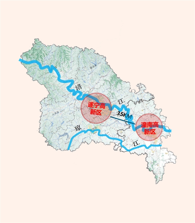 近年来,遂潼两地加强重点合作规划联编联审,共同印发工业、特色农业、服务业等专项规划,积极探索“两区分离改革”,推动遂潼涪江创新产业园区实质化运行,启动全国首例跨省毗邻区域村连片规划,策划全国首个“零碳绿能”田园综合体,与遂潼两地6家银行签订5年授信580亿元的战略合作协议。