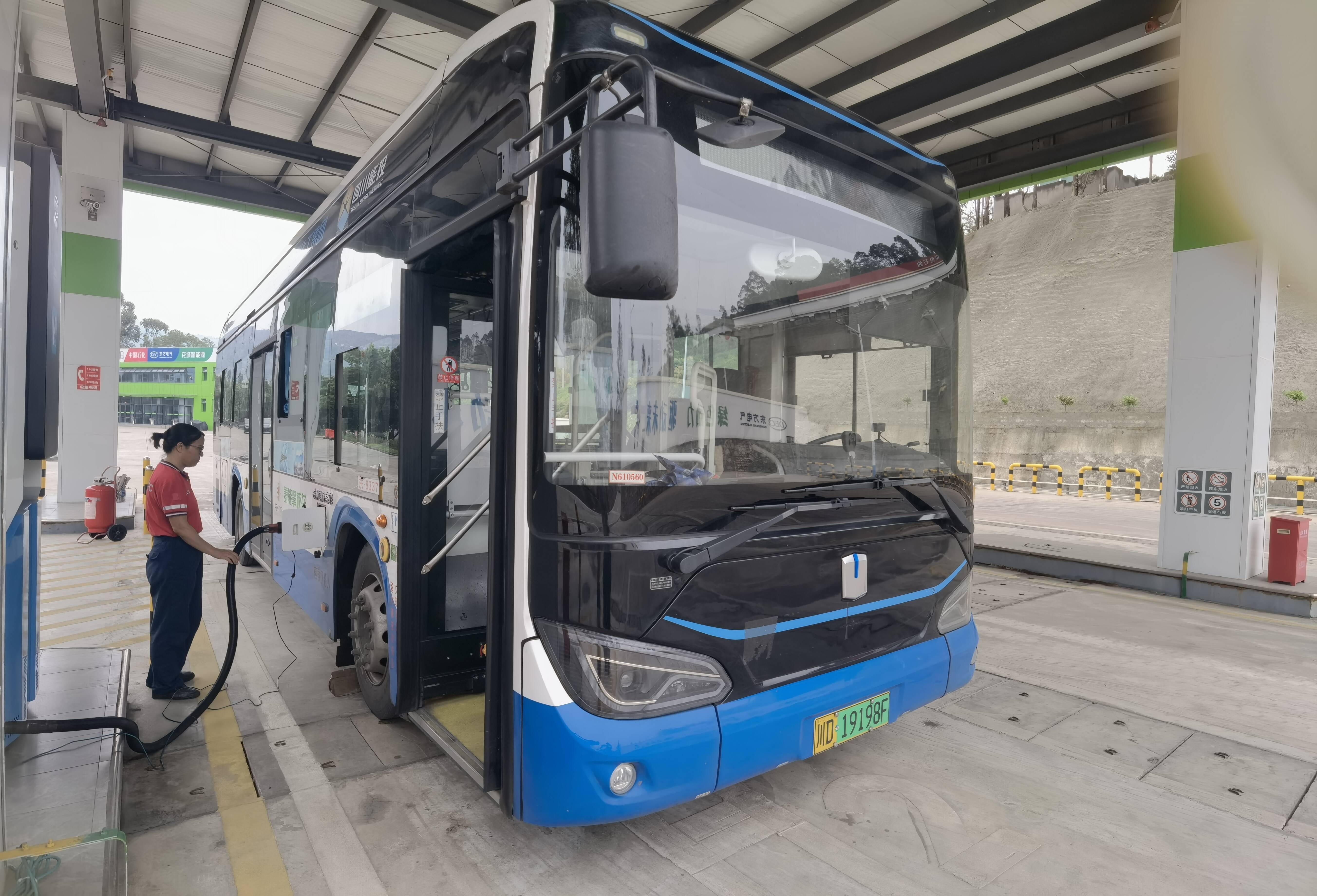 6月25日,在马店加氢站,几辆氢能公交车前来加氢,工作人员熟练地利用加氢机为其“添足动力”。2022年11月攀枝花氢能公交车正式投运,运行一年多以来,其平稳舒适的乘坐体验,得到了老百姓的交口称赞,现运行状况良好。