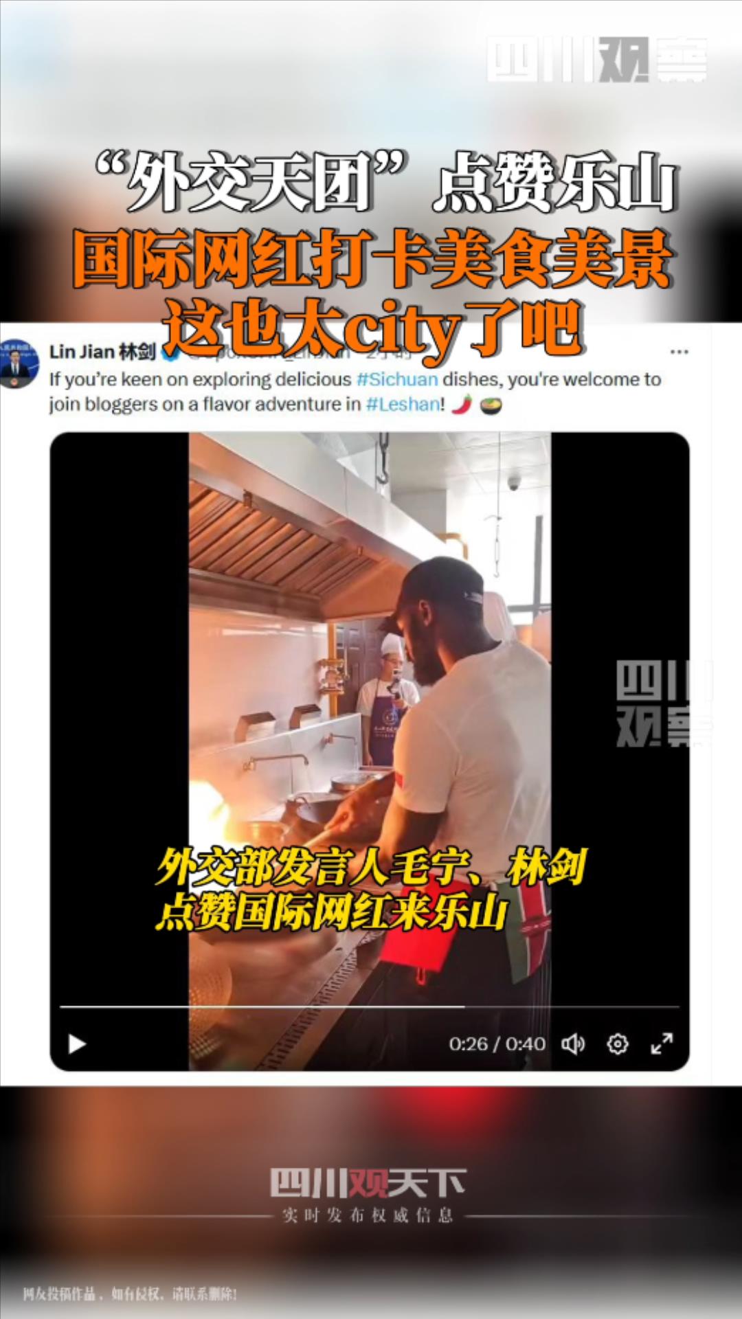 近日,外交部发言人毛宁在海外社交媒体平台上点赞并发文:“四川乐山的‘变脸’表演吸引了很多外国粉丝。”外交部发言人林剑也发文推荐川菜与乐山美食。