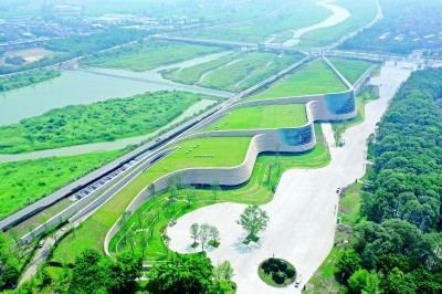 四川省德阳市广汉市三星堆博物馆外景航拍。资料图片
