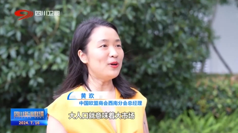 中国欧盟商会西南分会总经理 黄欢:在川的欧洲企业已经超过800家,四川是人口大省、资源大省,大人口就意味着大市场,成渝经济圈这个大的国家级方针政策,这是非常好的一个战略,给了更多的资源投入到四川,铁路空运都非常发达,成都中欧班列的始发量已经排到了全国第一,更为重要的是,四川的政府是一个非常开明合作的政府,他们也感到受到非常公平的对待,他们也非常看好我们四川的市场。