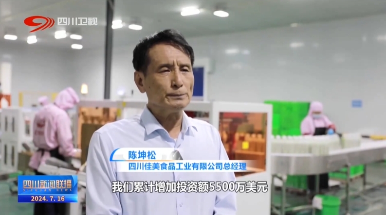 四川佳美食品工业有限公司总经理 陈坤松:落地四川以来,我们累计增加投资额5500万美元。当地政府对于工厂的发展相当关心重视,也给工厂扶持引导奖励激励优惠政策,作为外资企业,有信心持续增资扩产,不断做大做强。