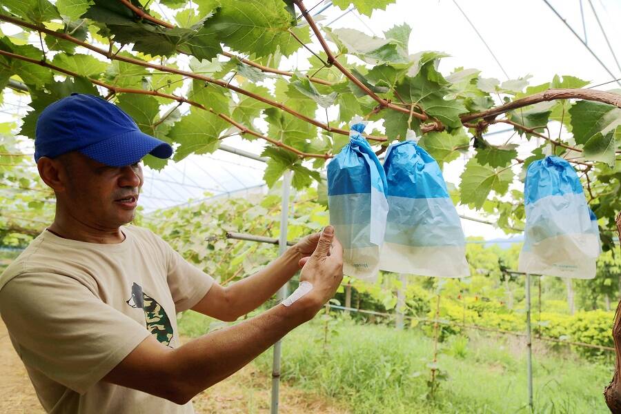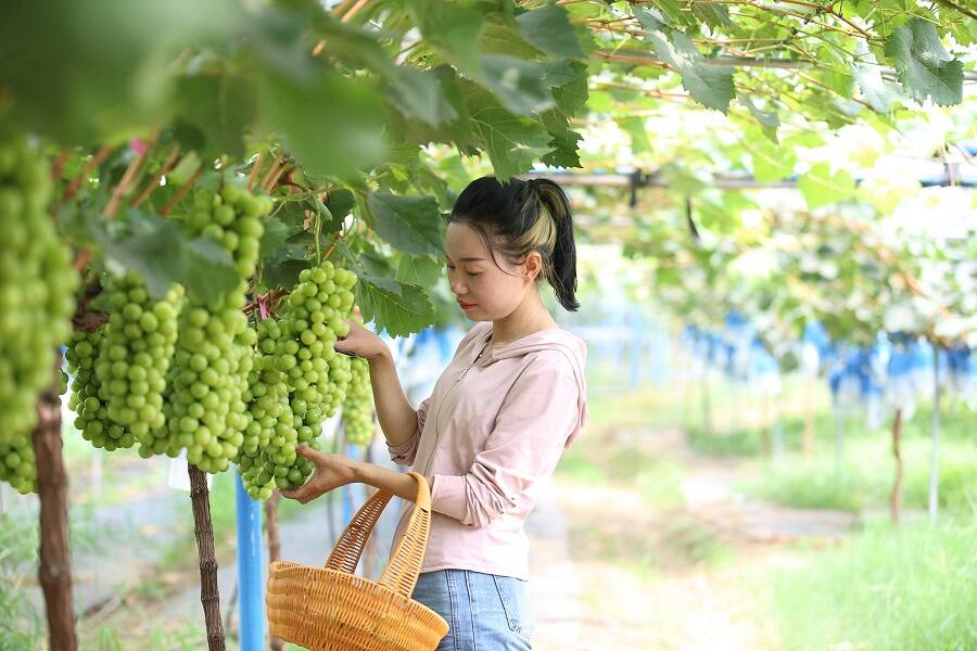 “普通的大棚只有3.4米高,我们需要5米高的棚,有利于葡萄散热;光线不强的地方,我们选择这种渐变色套袋的袋子,使葡萄上糖更均匀;每一串葡萄的颗数和每一颗葡萄的克数、直径都是有讲究的。”谢岸霏说,和普通传统的种植方法相比,这个葡萄园采用的关键技术让种葡萄更省力、品质更优。如今,葡萄园的葡萄每亩产量可达3000斤,亩均销售收入能够达到8万元左右。