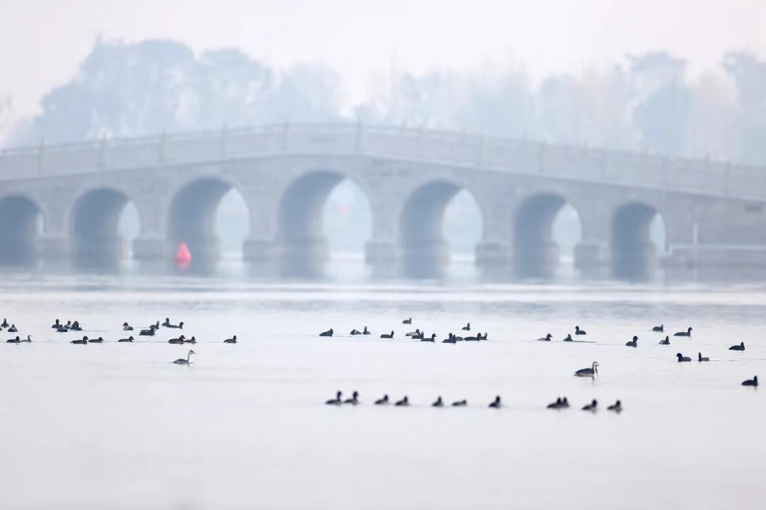 鱼鸟翔集的东安湖里,还生长着被誉为“水中大熊猫”的桃花水母。这种水母对水质的要求非常严格,适宜其生存的水域必须无毒无害、洁净。东安湖成为它们的家,其水质质量不言而喻。
