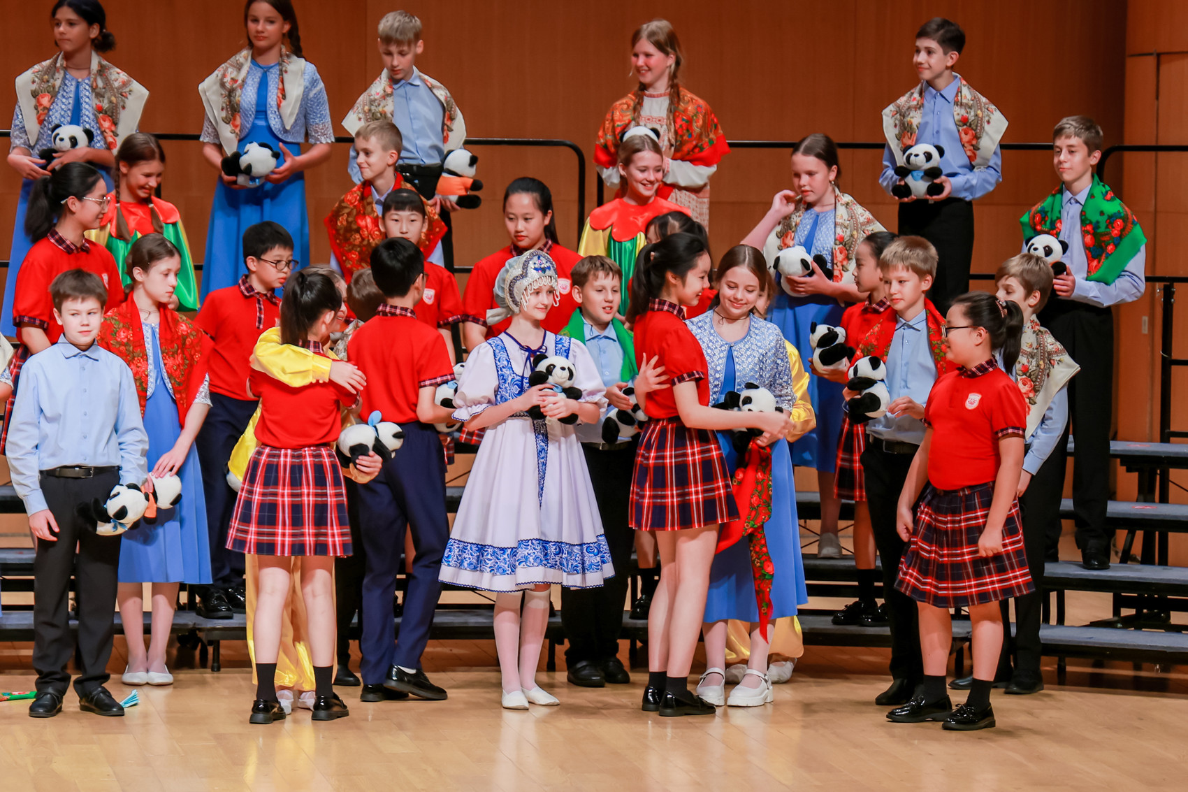 为期5天的中国国际合唱节,除了比赛,川童还积极参与国际交流。在7月18日于国家图书馆艺术中心·音乐厅举行的“2024‘熊猫之声’成都(国际)童声合唱音乐周北京专场音乐会”上,孩子们演绎的彝族、苗族民歌惊艳全场。活动现场,孩子们还与来自俄罗斯的合唱团同台交流,憨态可掬的熊猫和精致可人的套娃在舞台上彼此交换,两国孩子们在彼此热烈的拥抱、笑意中共谱“文化友谊”的音符。