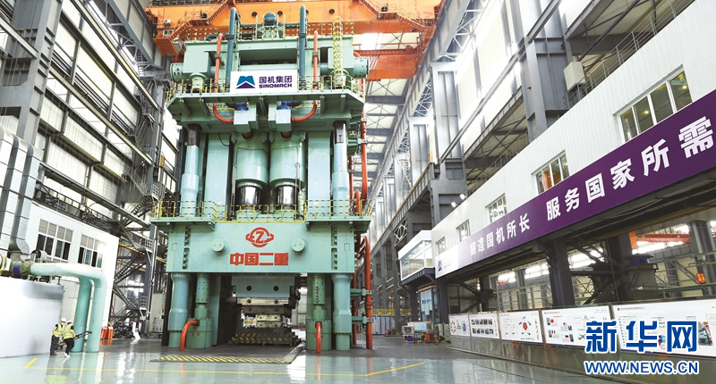 国机重型装备集团的8万吨模锻压力机。新华网发(罗兴康 摄)