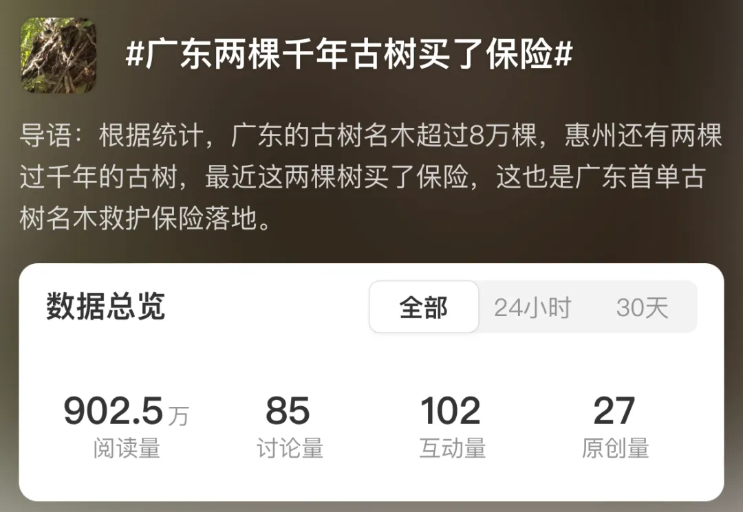 话题#广东两棵千年古树买了保险#登上热搜