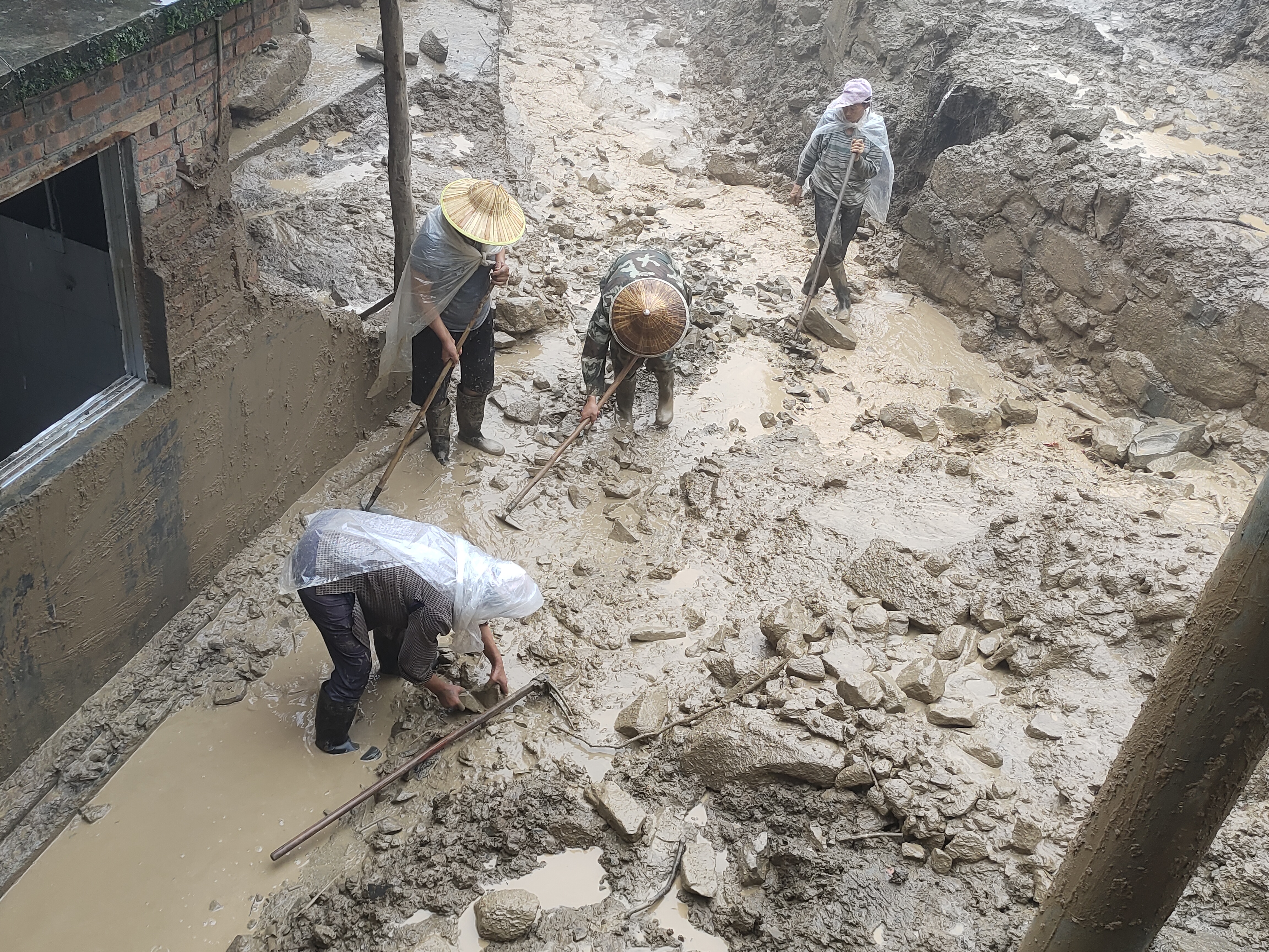 7月9日,旺苍县国华镇山坪村党员突击队开展滑坡区域清淤排危工作。康勇 广元日报全媒体记者 陈绍海 摄