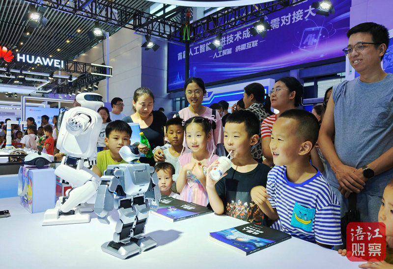 在科大讯飞展区内,各式各样的新“玩意儿”就吸引众多家长和孩子们前来体验人工智能的魅力,感受科技赋能教育的神奇。