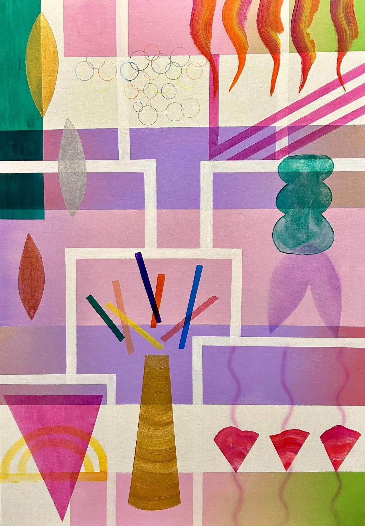 在成都的见闻,为她的创作提供了丰富素材。青花瓷瓶、古韵窗框、自然景观以及在川西见到的图案,玛丽亚将它们以抽象元素的形式组合在画中,构成新的故事。她计划把作品赠给浓园,或许未来在多个场合展出。“画家画完一幅画后,艺术品开始了自己的使命,去影响、启发他人。我的作品没有标准答案,人们要加上自己的想象去思考。我希望这是我留给成都的礼物。”