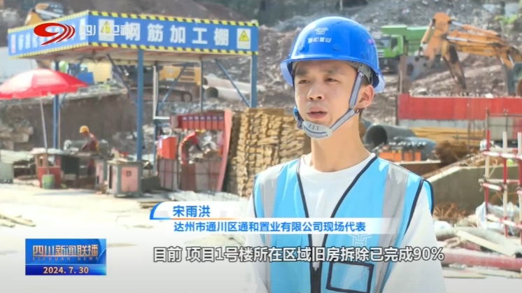 达州市通川区通和置业有限公司现场代表 宋雨洪:目前,项目1号楼所在区域旧房拆除已完成90%;2号楼、3号楼预计8月初进入主体施工阶段;4号楼按计划年底可完成主体施工。