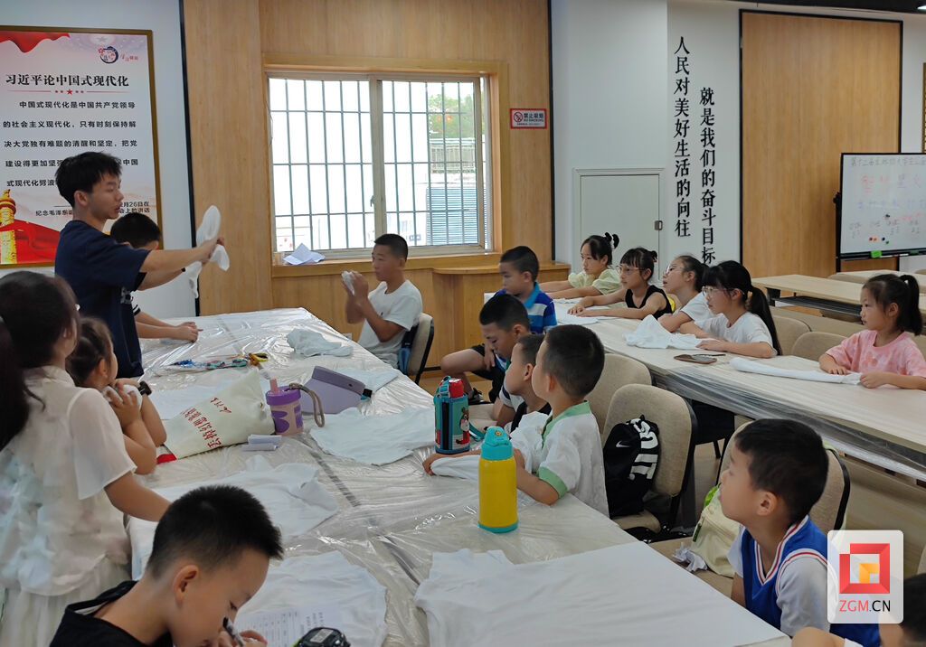 “大家知道什么是扎染吗?想不想自己动手试一次?”8月1日上午,大安区龙井街综合文化服务中心开展的暑期公益课堂第三课开讲。这堂饶有趣味的扎染艺术课中,小朋友们简要了解了扎染的历史和工艺流程,在老师的指导下动手制作专属自己的扎染作品,在沉浸式体验中感受非遗的魅力。